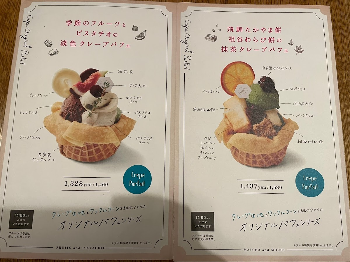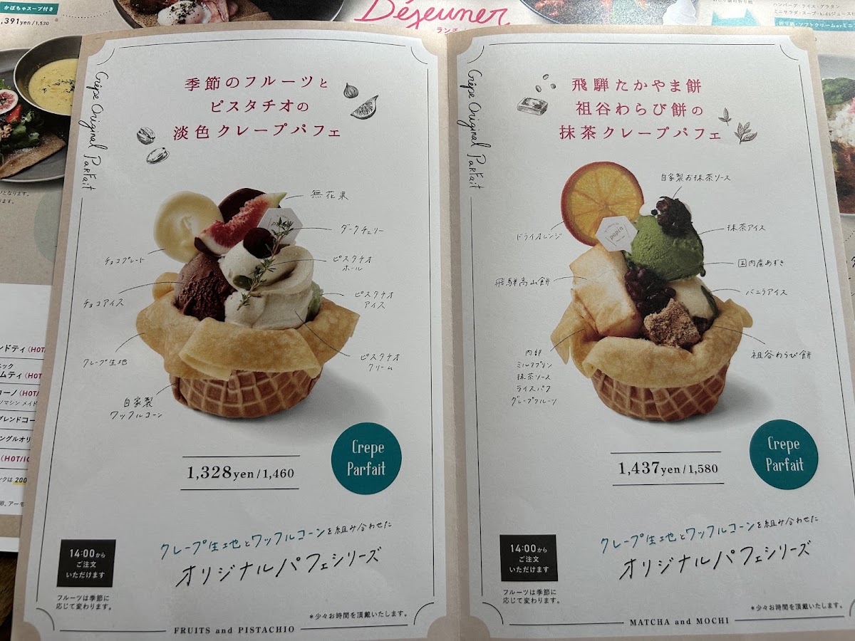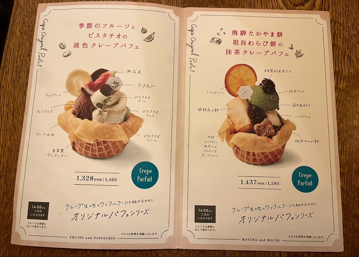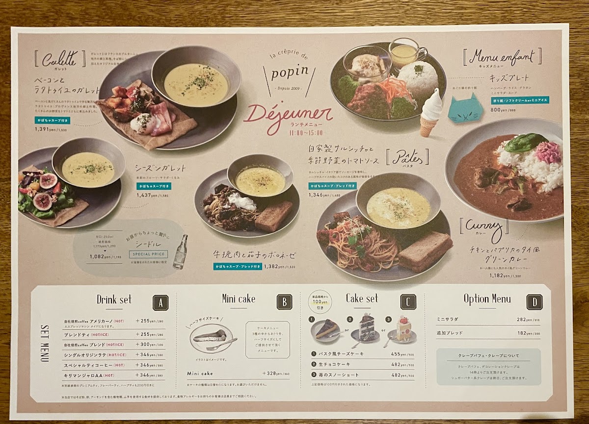 Drinks and café sides complete the experience smoothly, with カフェラテ providing a creamy, well-balanced coffee option that pairs effortlessly with both savory galettes and sweet crepes. Taken together, the menu reflects a clear identity: thoughtfully prepared dishes, a strong focus on galettes and desserts, and a sense of consistency that makes each item feel like it belongs. This careful balance between savory depth and sweet refinement defines the overall character of the menu and leaves a clear impression of a café that knows exactly what it wants to offer.